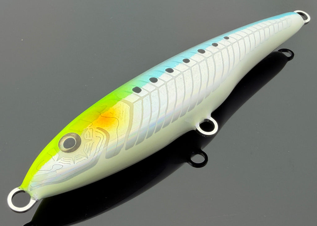 At rest this lure will sink slowly in a horizontal position. A steady retrieve, rod tip down, will produce a smooth wide S swimming motion. Vary the speed, introduce slow sweeps of the rod and this lure responds with an irresistible action. Add the occasional twitch or stab of the rod tip and then allow the lure to stall out on the pause... this is when it shows it's magic and gets crushed!!!