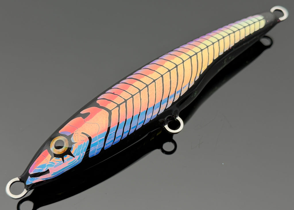 At rest this lure will sink slowly in a horizontal position. A steady retrieve, rod tip down, will produce a smooth wide S swimming motion. Vary the speed, introduce slow sweeps of the rod and this lure responds with an irresistible action. Add the occasional twitch or stab of the rod tip and then allow the lure to stall out on the pause... this is when it shows it's magic and gets crushed!!!